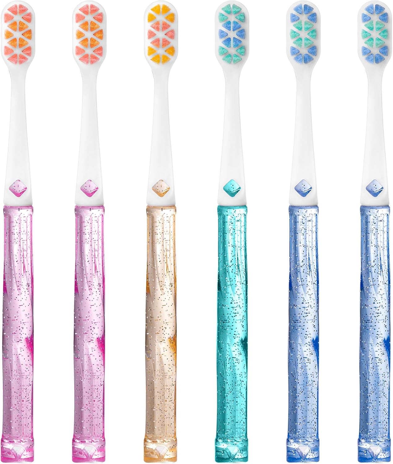 - Starry Crystal Handle: Designed with an ergonomic grip in mind, our very soft toothbrush’s handle features spiraled wave patterns that fit snugly in your hand, it provides a secure and comfortable grip. The starry crystal design sparkles under the light, turning each brushing session into a dazzling affair